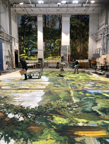 working on a painted canvas for the Théâtre de la Comédie Française in Paris